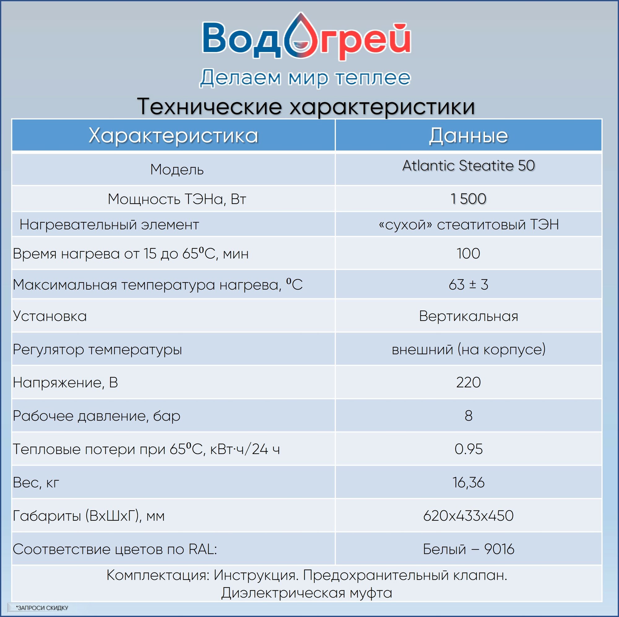 Водонагреватель ATLANTIC STEATITE Elit 50 (841212/841316)