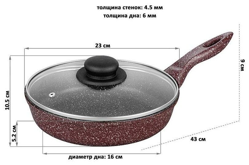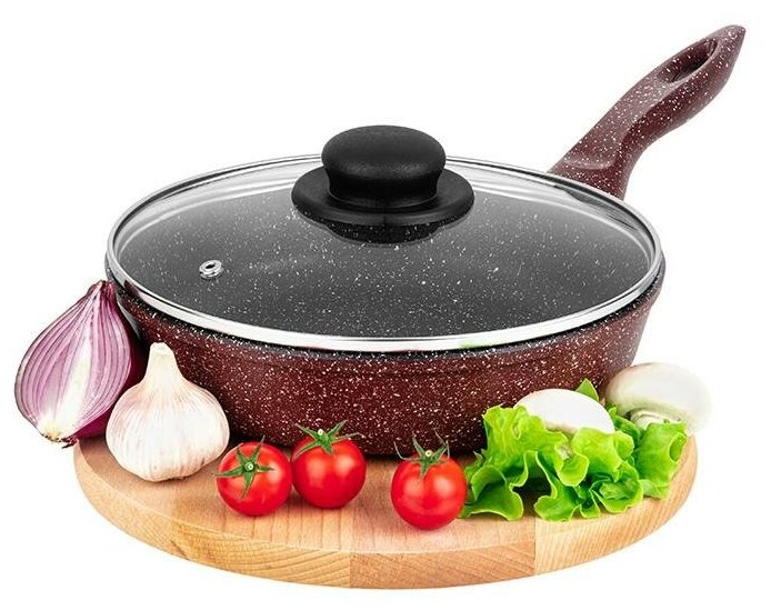 Сковородка Сковорода глубокая 22 см Elan Gallery гармония вкуса Рубиновый дуэт с крышкой D22, с несъёмной ручкой