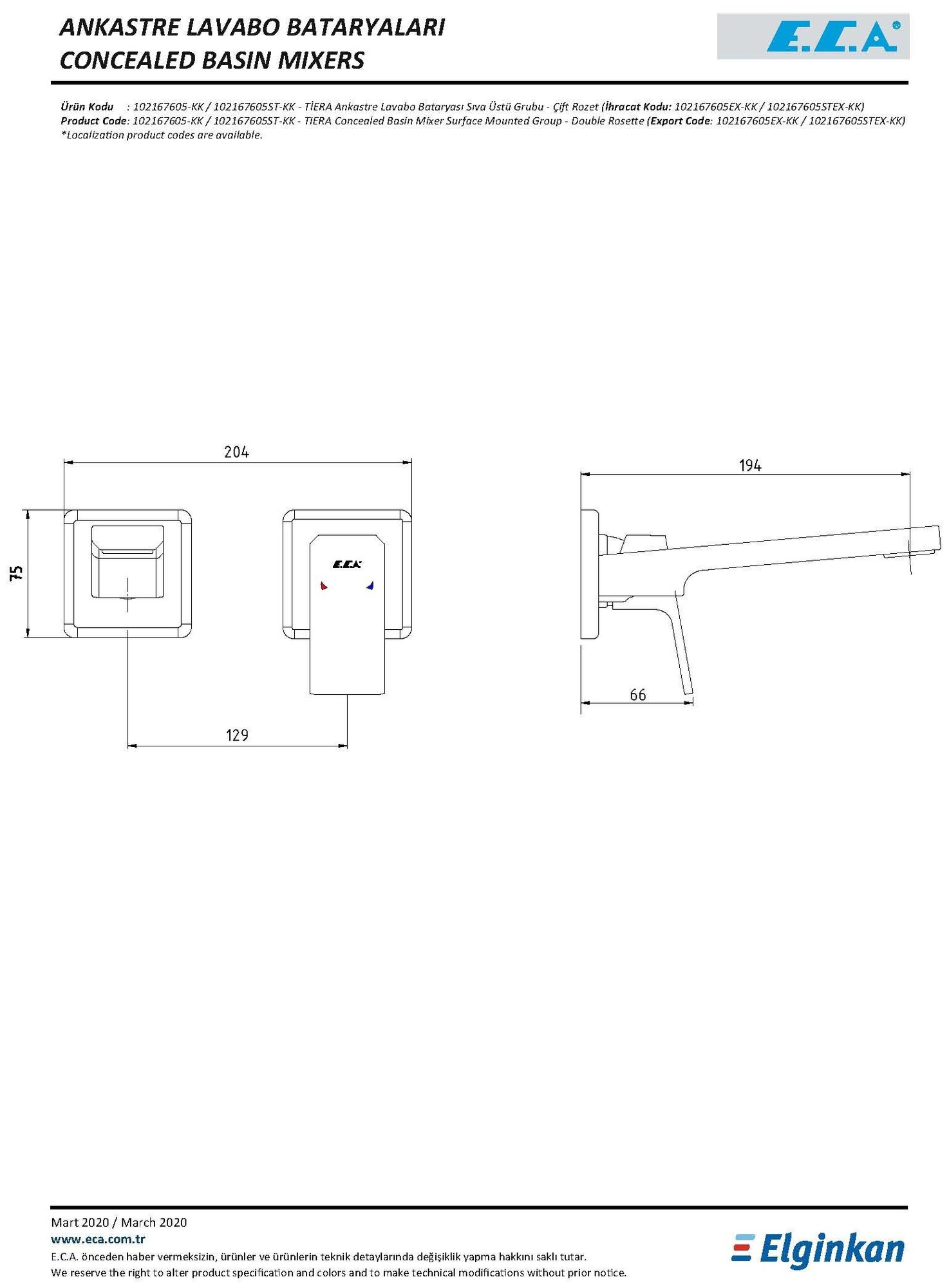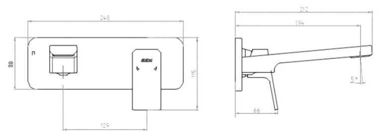 E.C.A 102167605EX-K TIERA смеситель для раковины настенный (внешняя часть)