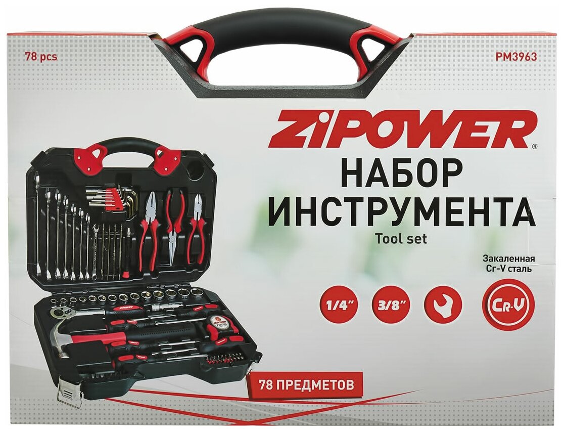 Набор ручного инструмента, 78 предметов, Cr-V сталь Zipower