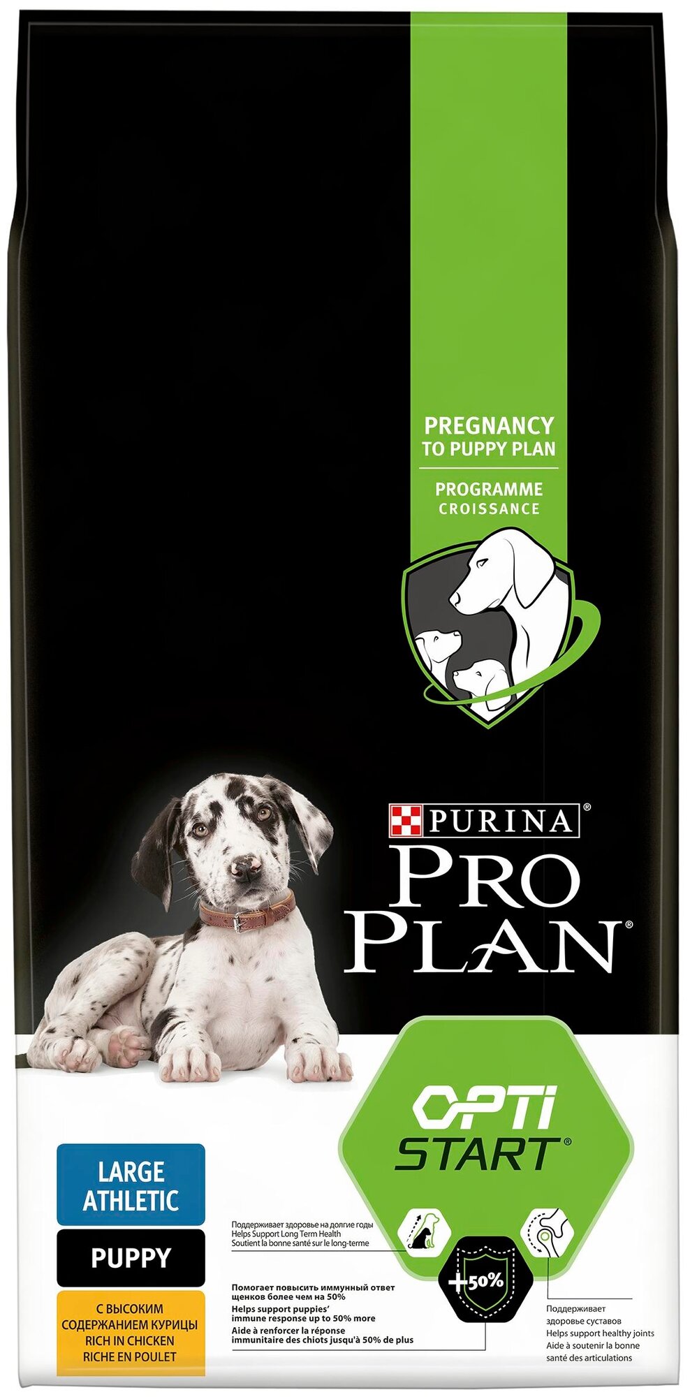 PRO PLAN OPTISTART PUPPY LARGE ATHLETIC для щенков крупных пород атлетического телосложения с курицей и рисом (3 + 3 кг)