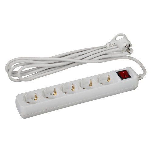 Сетевые фильтры и удлинители Сетевой удлинитель Эра U-5es-5m-3x1, 5м, белый [б0028383]