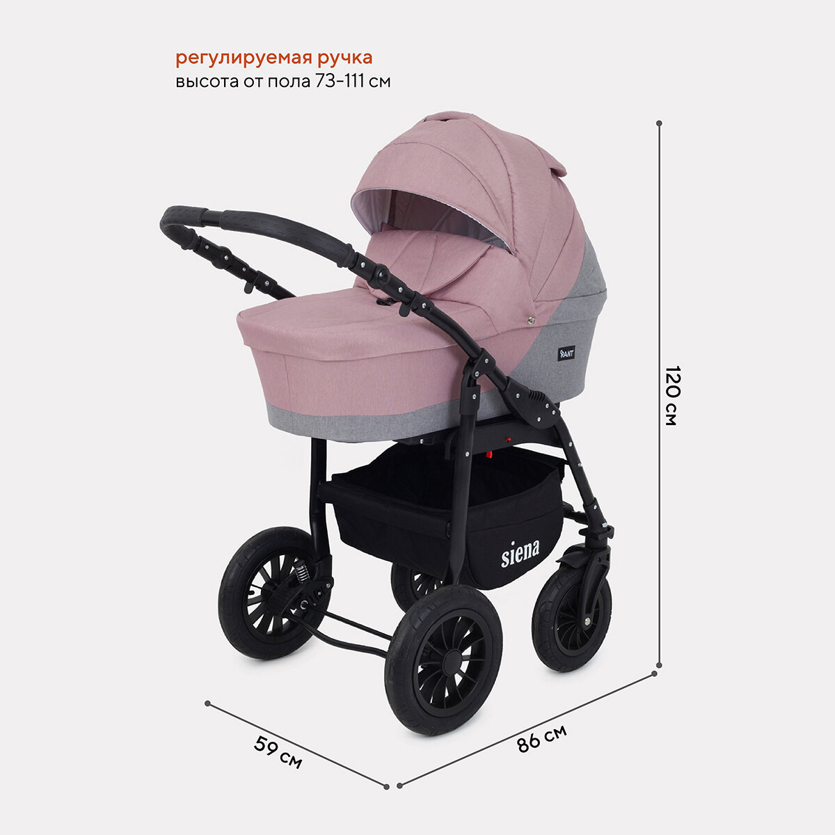 Лучшие цены. Коляска детская универсальная Rant Siena 3 в 1 Веселые прогулки и сладкий сон Плюсы люльки: полное закрытие от непогоды вентиляционное окно в капюшоне (белая сеточка) безопасная ручка-переноска для крохи, который только начал сидеть, регулируемая спинка Плюсы прогулочного блока: устанавливается лицом к маме /лицом к миру спинка регулируется, включая горизонтальное положение для крепкого сна (прогулочный блок). Магазины в вашем городе.