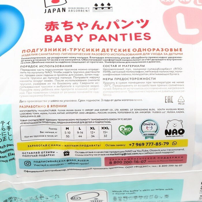 Лучшие цены. Подгузники NAO - ваши незаменимые помощники, которым вы можете доверить самое ценное: здоровье и психо-эмоциональное состояние малыша! Кожа вашего малыша будет безупречно-сухой благодаря тому, что подгузники NAO имеют уникальную структуру. Их внутренняя поверхность - нежная ячеистая структура, которая "запирает содержимое подгузника на замок". Отличная воздухопроницаемость, широкий размерный ряд позволяют использовать продукцию бренда NAO с первых дней рождения малыша и до полного осознания. Магазины в вашем городе.