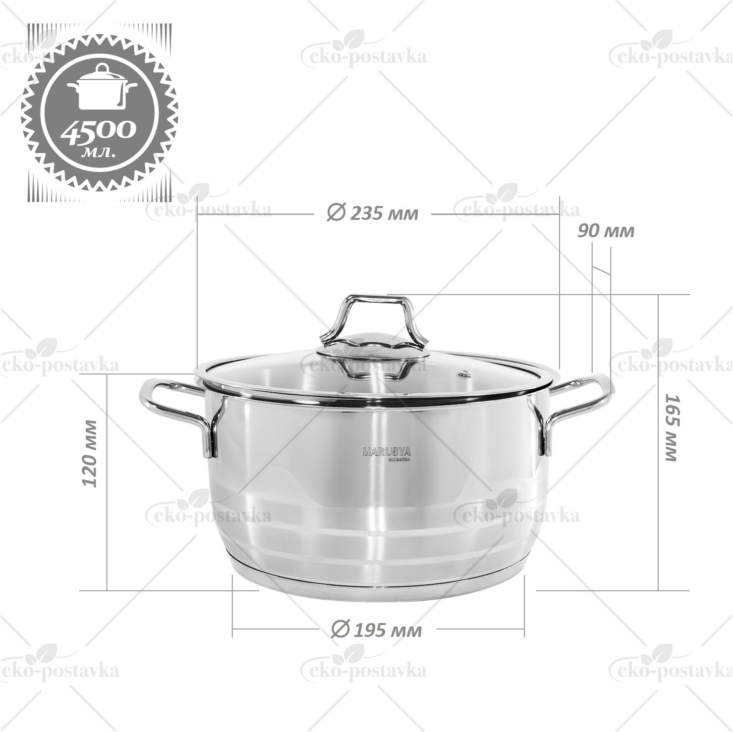Кастрюля Нерж 4,5Л Классика Ст/кр Индукц ДНО Marusya (6) .