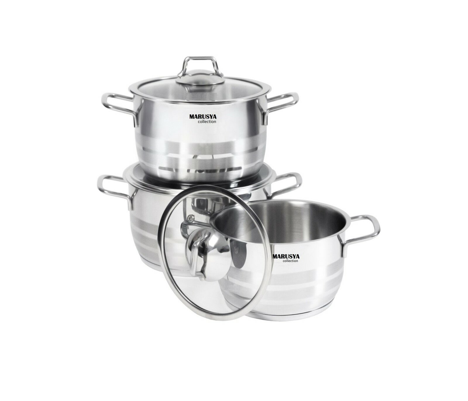 Кастрюля Набор кастрюль 6 пр. из нержавеющей стали со стекл. кр. (2,5л, 3,7л, 4,5л)