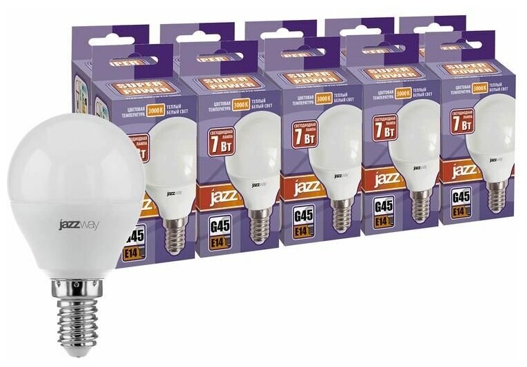 Лампочка Лампа светодиодная PLED-SP 7Вт G45 3000К тепл. бел. E14 230В 50Гц (уп.10шт) JazzWay 1028365