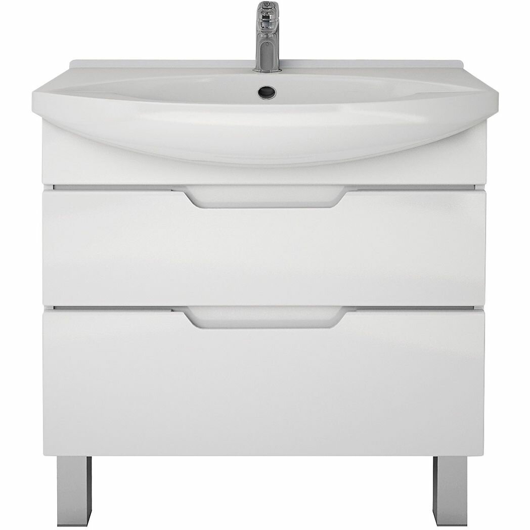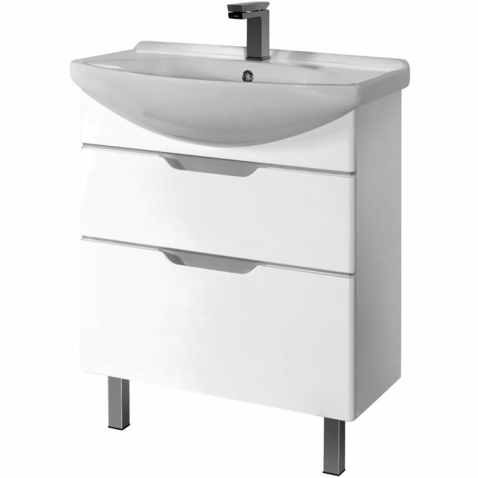 Тумба Dreja Laguna Plus 75, 99.0106, подвесная/напольная, 2 ящика, с опорами, белый глянец