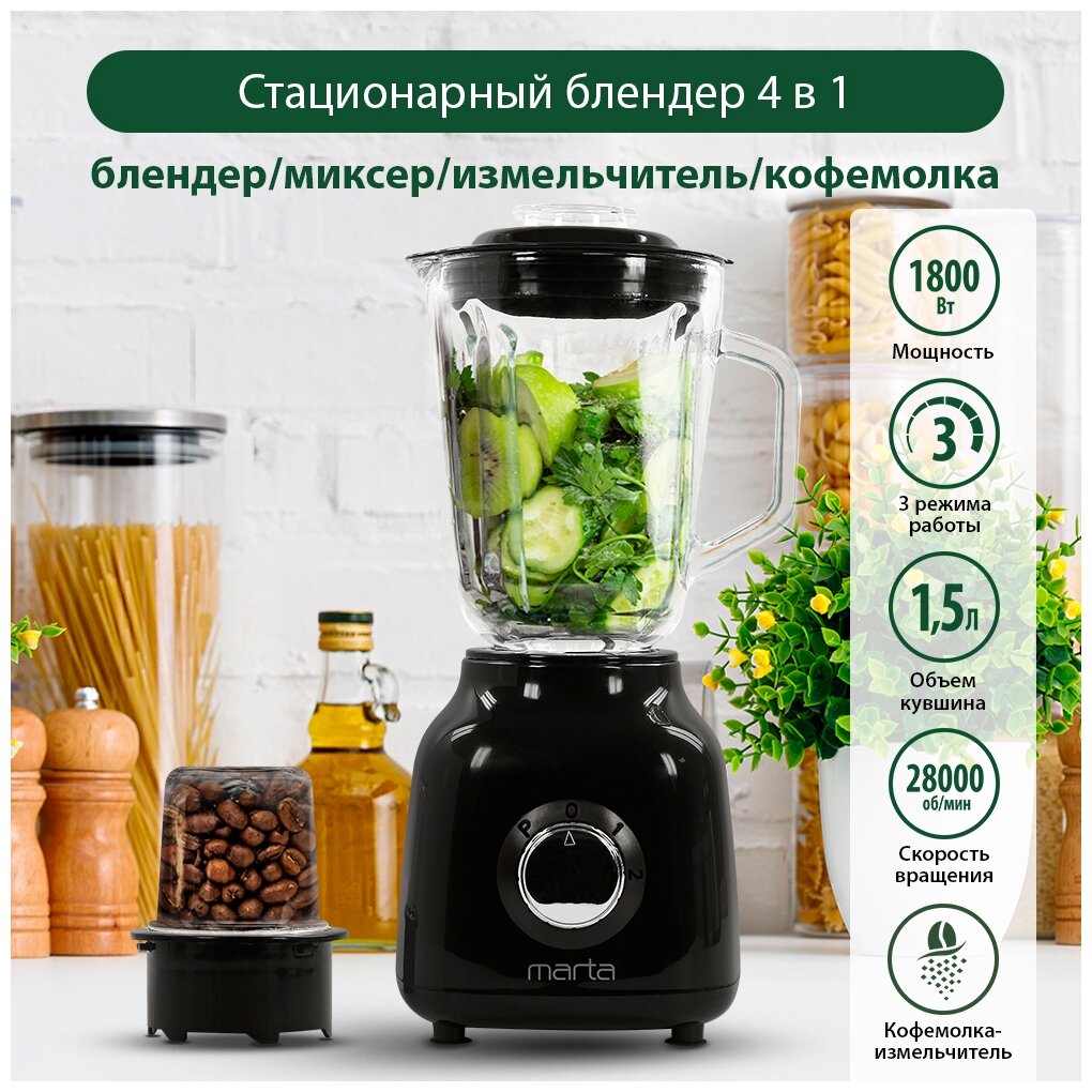 Миксеры и блендеры Стационарный блендер MARTA MT-1592, черный жемчуг