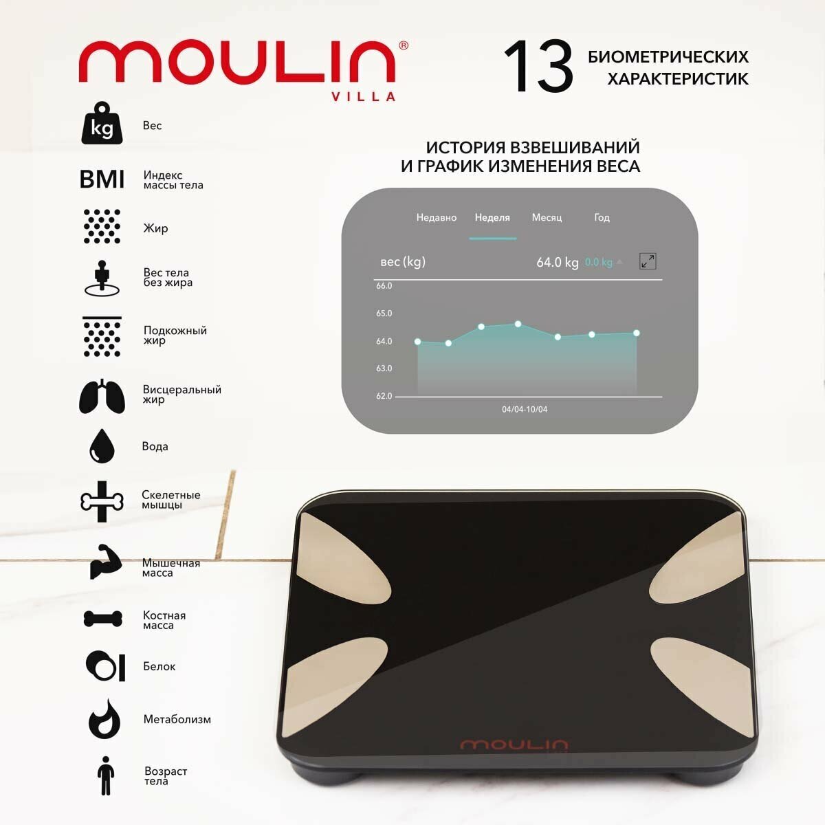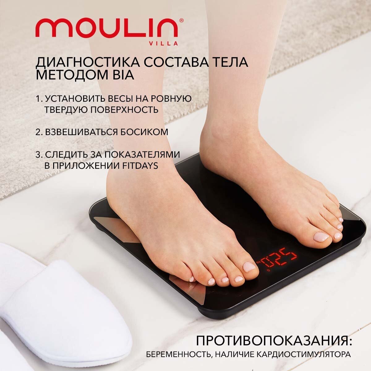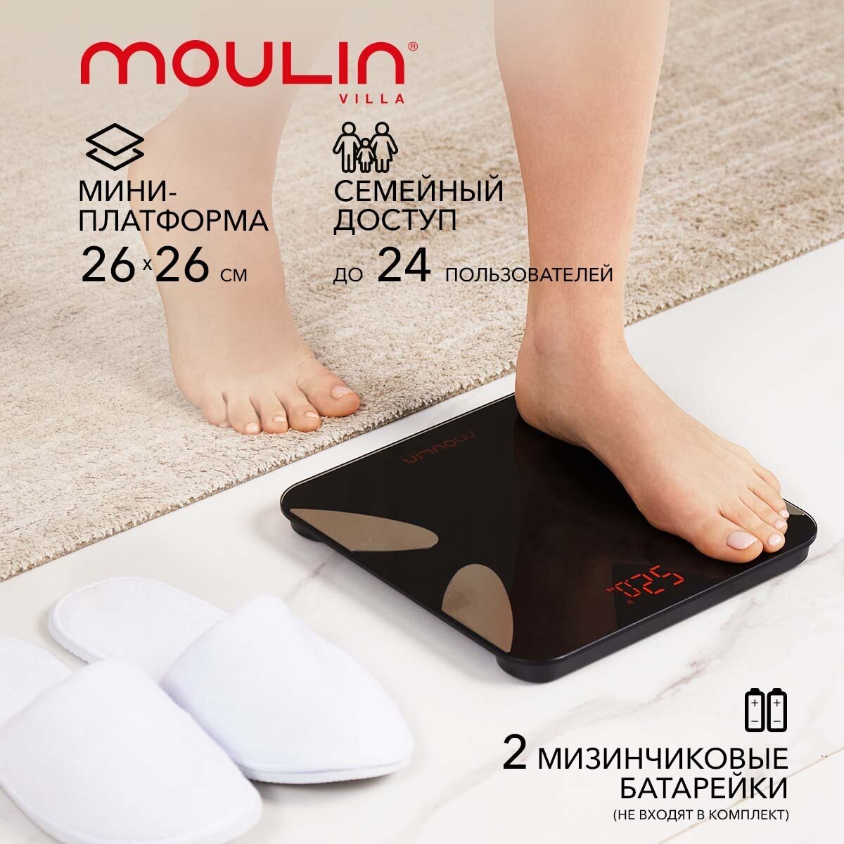 Весы Умные весы Moulin Villa MV SC-003 mini / весы напольные электронные / напольные весы / диагностические весы / весы напольные мини, черный