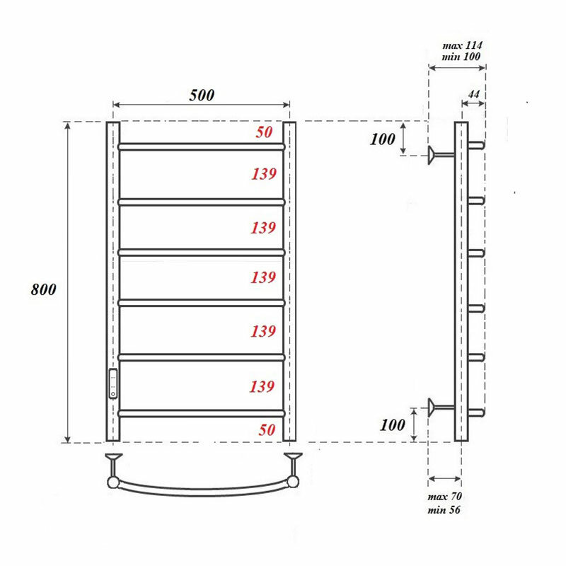 Полотенцесушитель электрический 500x800 POINT Афина (PN04758 П6) диммер слева