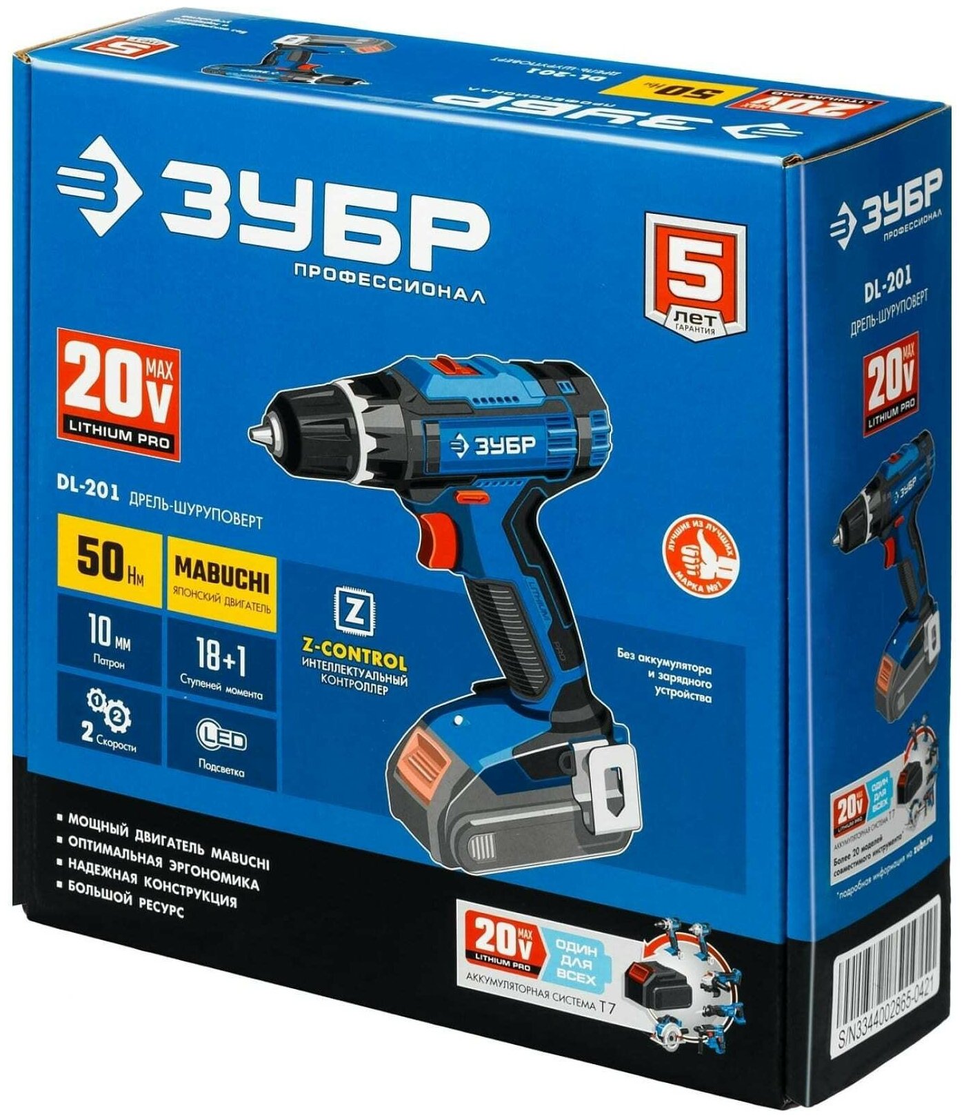 ЗУБР 20В, без АКБ, в коробке, дрель-шуруповерт, Профессионал. DL-201(DL-201)