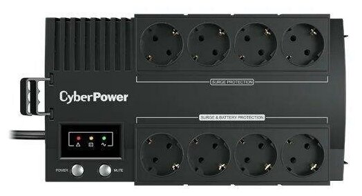Лучшие цены. Источник бесперебойного питания CyberPower BS850E Характеристики: Тип резервный Выходная мощность 490 Вт Интерфейс USB Да Монтаж в стойку Нет Время работы при полной нагрузке 2 Время работы при половинной нагрузке 7 Форма выходного сигнала ступенчатая аппроксимация синусоиды Количество выходных разъемов питания 8 (из них с питанием от батарей - 4) Тип выходных разъемов питания Schuko (Розетки Европейского типа). Магазины в вашем городе.