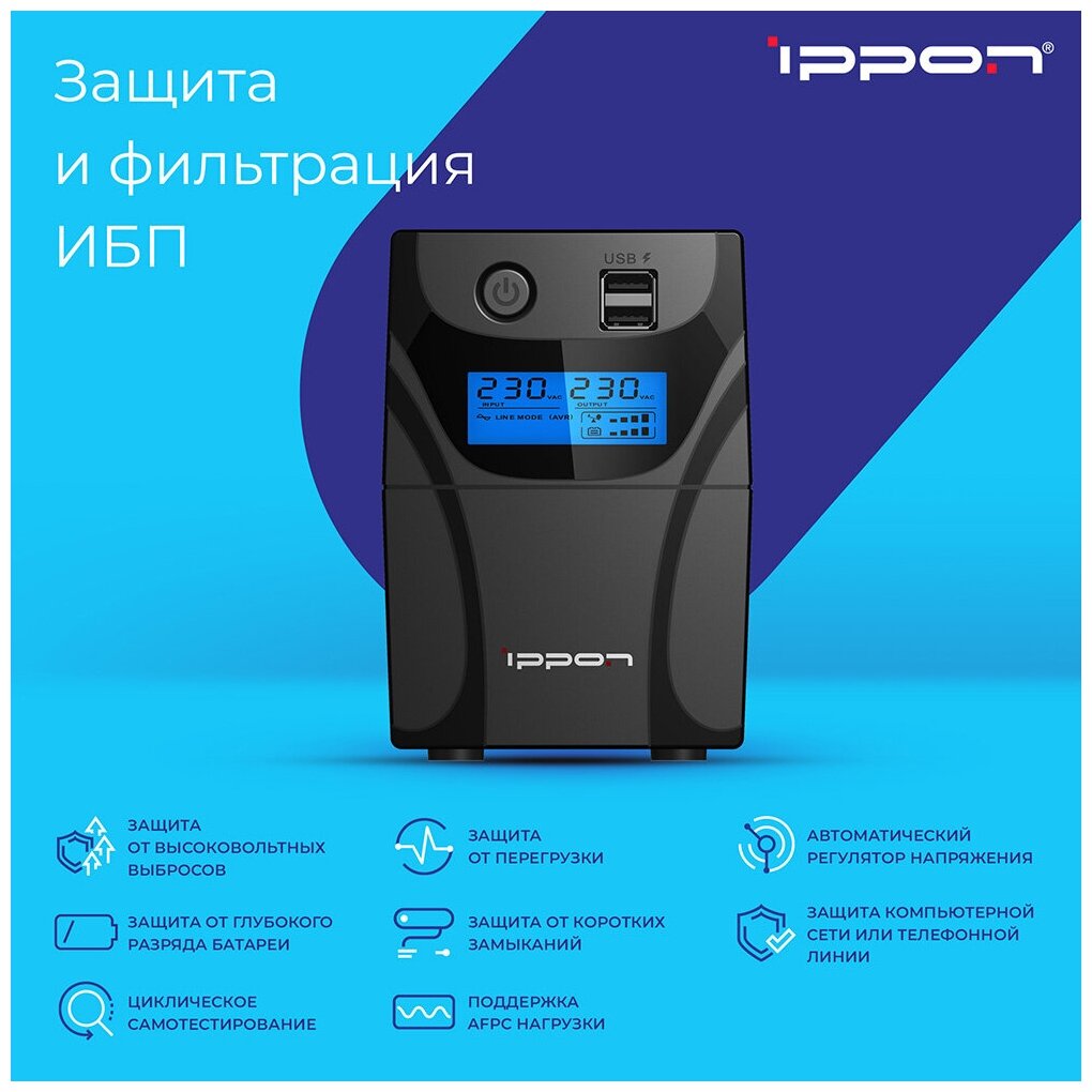 Лучшие цены. Источник бесперебойного питания IPPON Back Power Pro II Euro предназначен для защиты персональных компьютеров и рабочих станций от основных неполадок с электропитанием. Имеет функцию циклического самотестирования, позволяющего вовремя заменить батарею. Есть 2 разъема USB для зарядки мобильных устройств. Магазины в вашем городе.