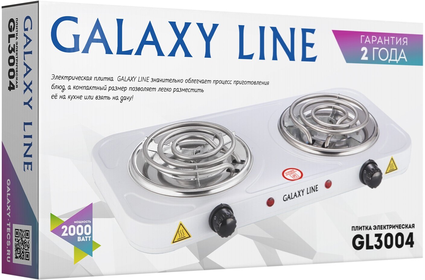 Лучшие цены. Компактная двухконфорочная электрическая плитка GALAXY GL3004 незаменима в ограниченном пространстве, в общежитии, на даче и в отсутствии возможности установки стационарной плиты. Плитка быстро нагревается, стабильно поддерживает заданную температуру, экономно расходует электроэнергию. В качестве нагревательного элемента модель GALAXY GL3004 имеет открытую спираль. Магазины в вашем городе.