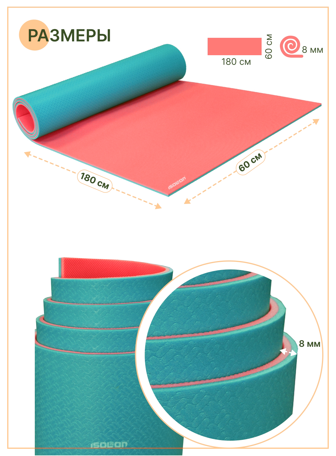 Туристические коврики Коврик для туризма и отдыха классический Isolon Tourist 8 мм, 180х60 см красный/бирюзовый