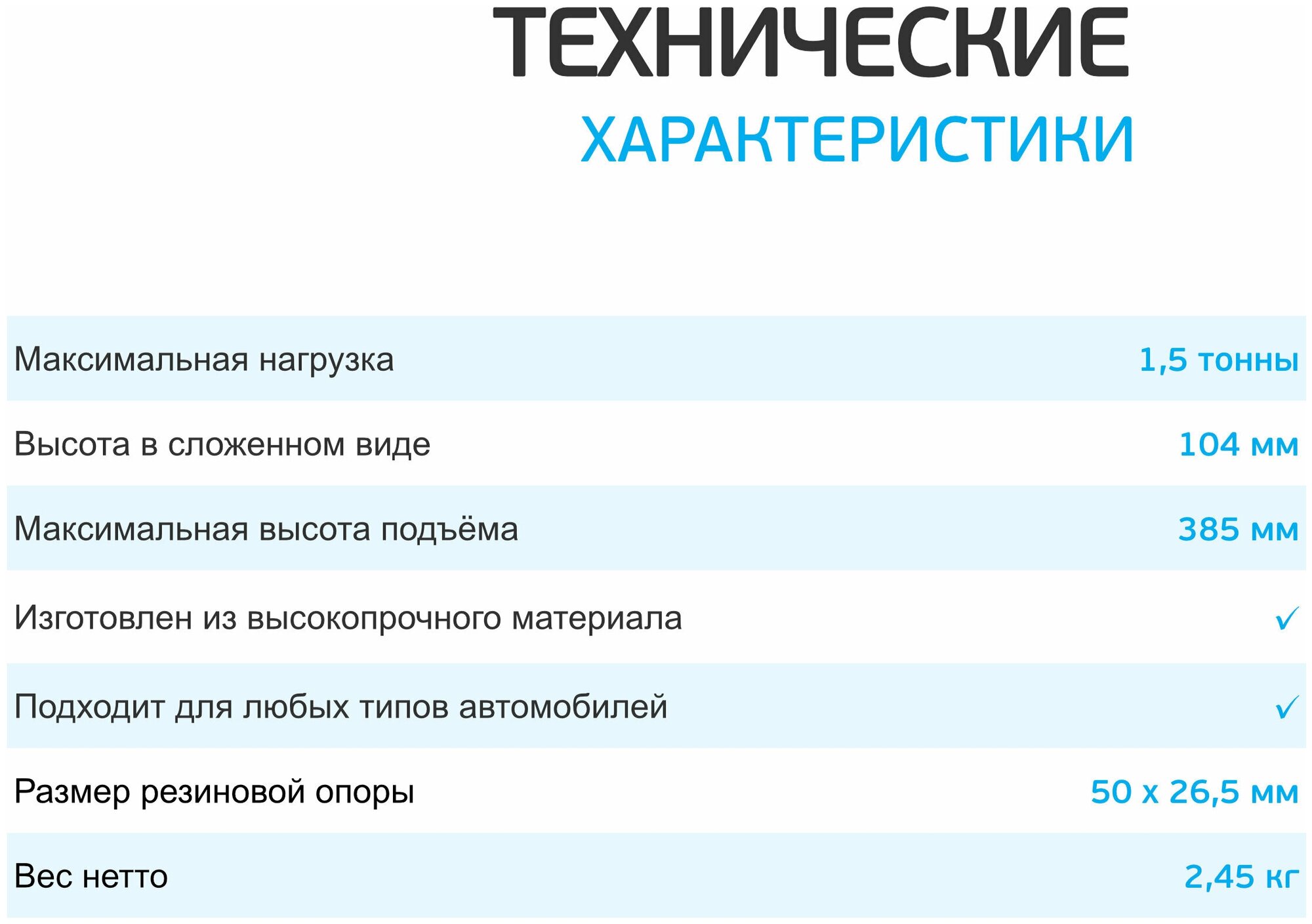 Домкрат ромбический AVS JA-1500R с резиновой опорой + сумка в комплекте, 1,5т.