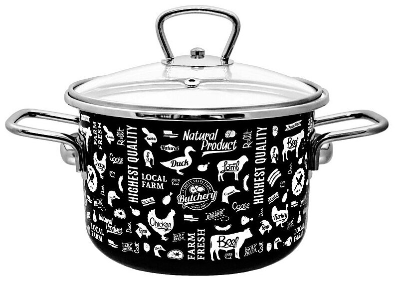 Кастрюля эмалированная сталь, 2 л, с крышкой, крышка стекло, Vitross, Bon Appetit, 8SD165S/8SB185S, мокрый асфальт, индукция
