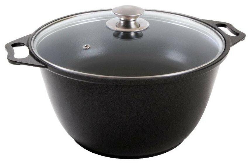 Кастрюля Kukmara 2 л с антипригарным покрытием, литой алюминий, стеклянная крышка 20см, черная, к22а