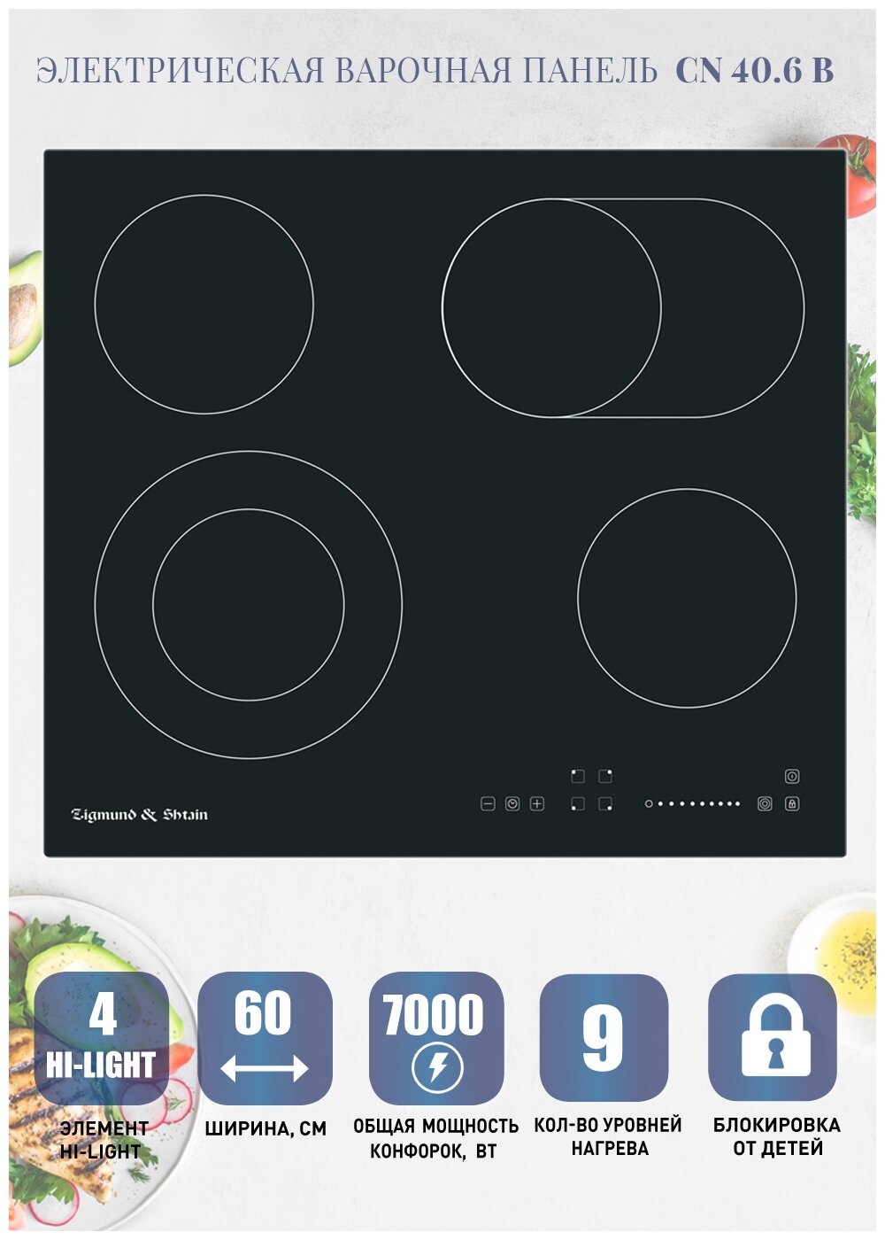 Варочные поверхности Встраиваемая электрическая варочная панель Zigmund & Shtain CN 40.6 B