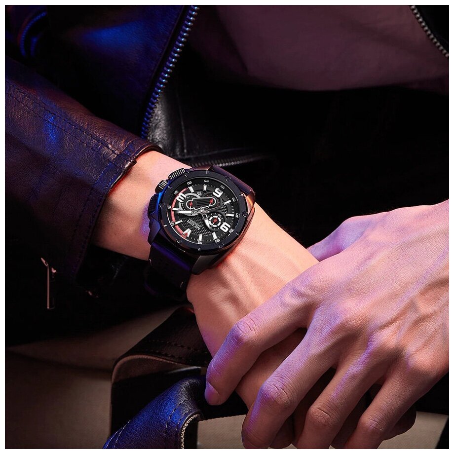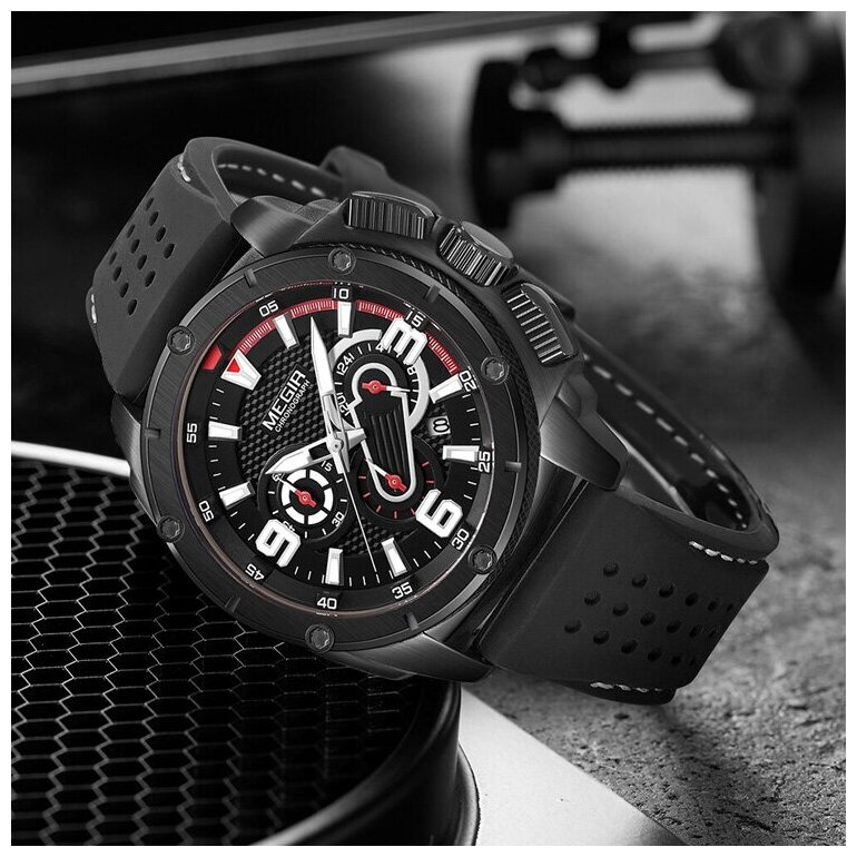 Лучшие цены. Аксессуары играют крайне важную роль во внешнем виде любого мужчины. И конечно же должны выполнять ряд обязательных требований, например, быть удобными, иметь мужской дизайн и быть простыми в использовании. Именно такими являются мужские наручные часы Megir 2147G (B/B/R). Выполненные в черном цвете с белыми метками и цифрами на циферблате, они смотрятся стильно, и при этом не слишком строго. Особенности часов Megir 2147G (B/B/R). Магазины в вашем городе.