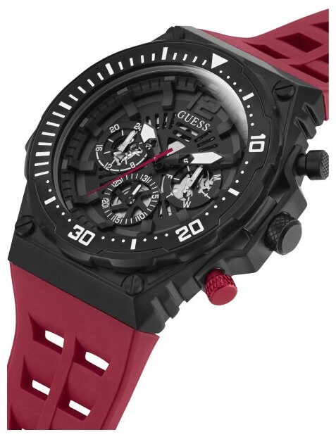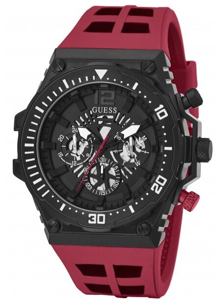 Лучшие цены. Модель: Guess GW0325G3 Пол: Мужские Механизм: Кварцевый Корпус: Нержавеющая сталь, IP покрытие Браслет: Каучук Водозащита: 50 м Стекло: Минеральное Будильник: Есть Циферблат: черный Календарь: Есть Дополнительные функции: 12-ти часовой формат времени, Мировое время, Скелетон, 24-х часовой формат времени Размер ширина: 12 Размер диаметр: 48 Размер высота: 48 Гарантийный срок: 2 года Комплектация: часы, фирменная упаковка, руководство, гарантия Страна: США. Магазины в вашем городе.