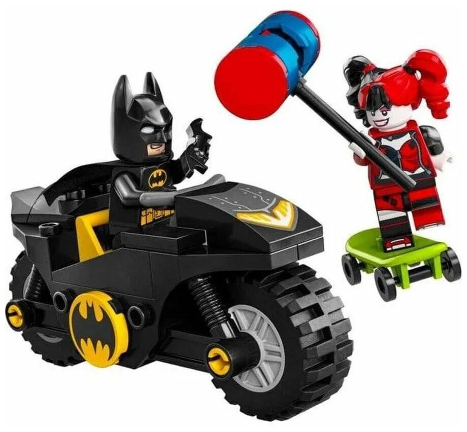 Лучшие цены. Харли Квинн на своем скейтборде затевает очередное злодейство, но Бэтмен на мощном бэтцикле с широкими колесами уже здесь, чтобы остановить ее. Рыцарь в плаще запускает свой бэтаранг, а бесстрашная скейтбордистка размахивает молотом. Как будет развиваться эта фантастическая схватка? Зависит от вас! В набор для сборки LEGO® DC " Бэтмен против Харли Квин" (76220) входят классические персонажи, крутая техника и потрясающие аксессуары, чтобы вовлечь детей от 4 лет в совместную развивающую игру. Магазины в вашем городе.