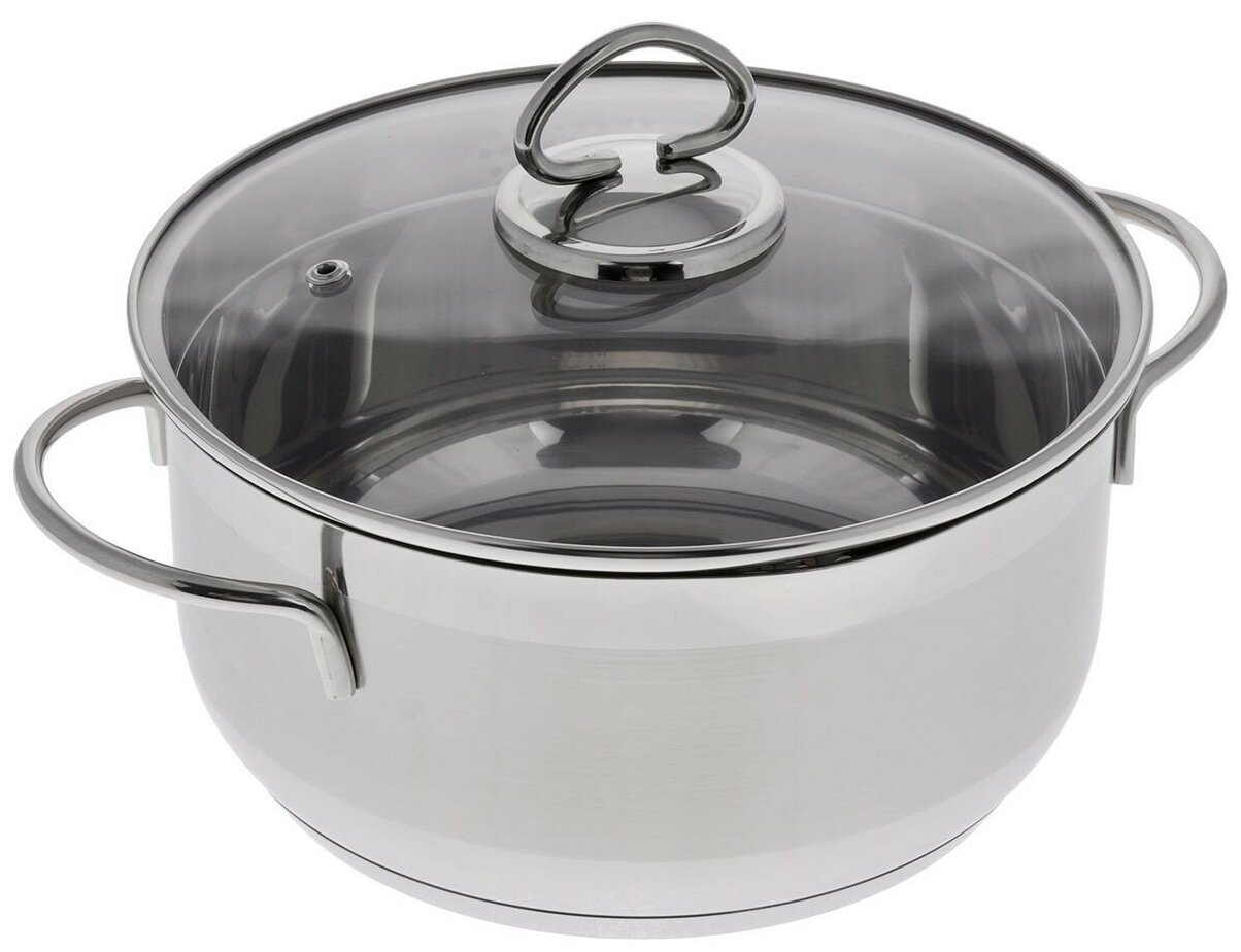 Лучшие цены. Кастрюля изготовлена из высококачественной нержавеющей стали AISI 304 (18/10) с толщиной стенки 0,6 мм. Изделие имеет теплоемкое капсульное дно и два специальных носика на ободе для слива жидкости. Стеклянная крышка с паровыпуском и отверстиями различного диаметра в стальном ободке предназначены для безопасного слива жидкости. На внутренней стенке кастрюли имеется мерная шкала. Комбинирование матовой и зеркальной полировки придает посуде эстетичный вид. Магазины в вашем городе.