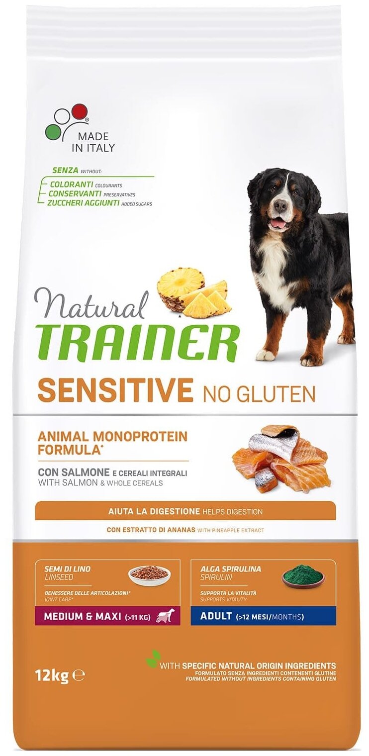 TRAINER NATURAL SENSITIVE NO GLUTEN MEDIUM & MAXI ADULT SALMON безглютеновый для взрослых собак средних и крупных пород с лососем (12 кг)