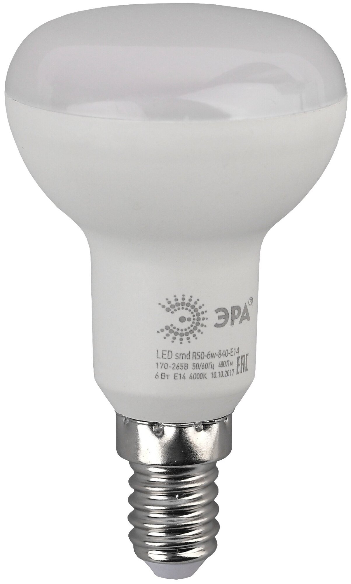 Лампа светодиодная R50-6w-840-E14 480лм ЭРА Б0017228/Б0020556 ( 1шт. )