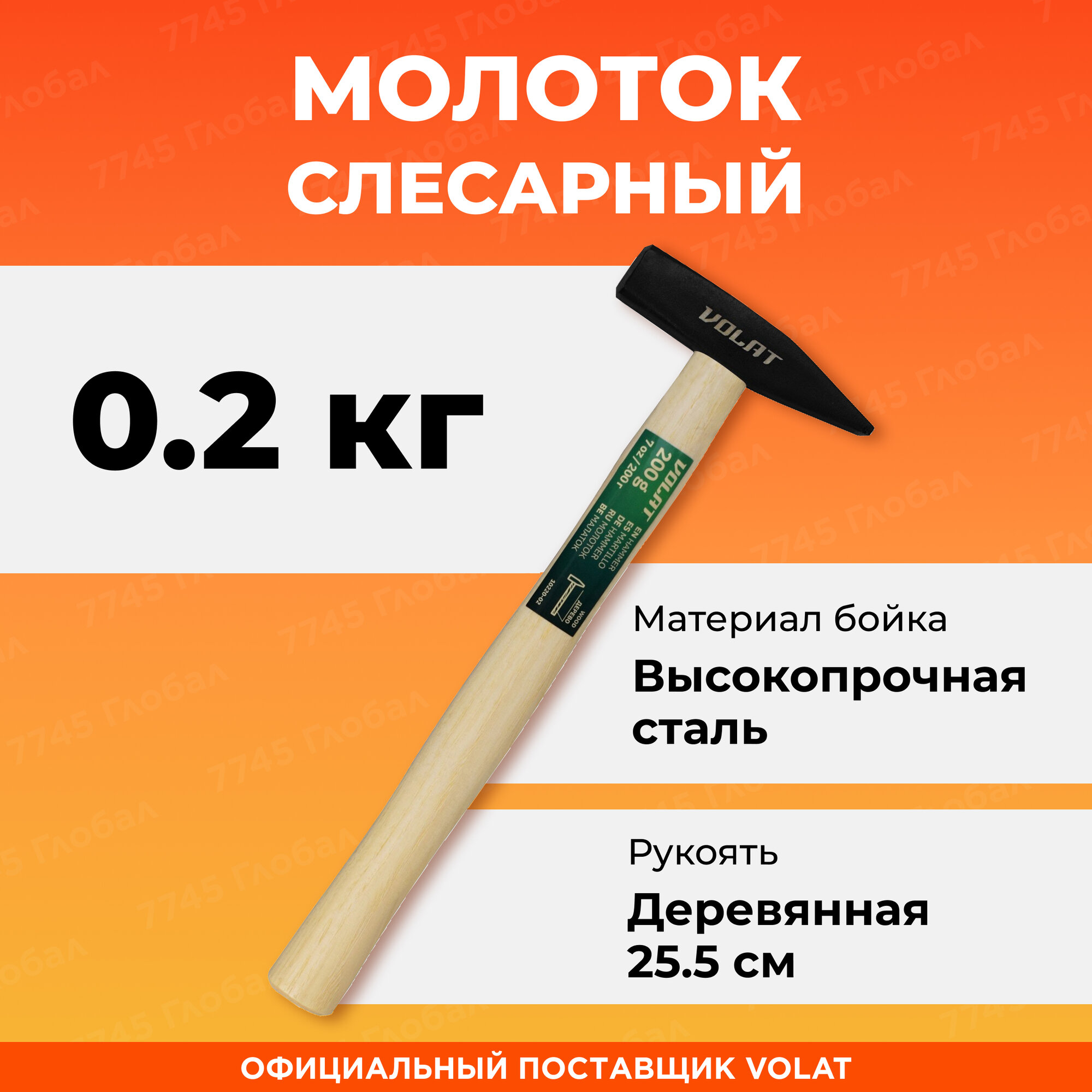 Молоток слесарный 0,2 кг волат