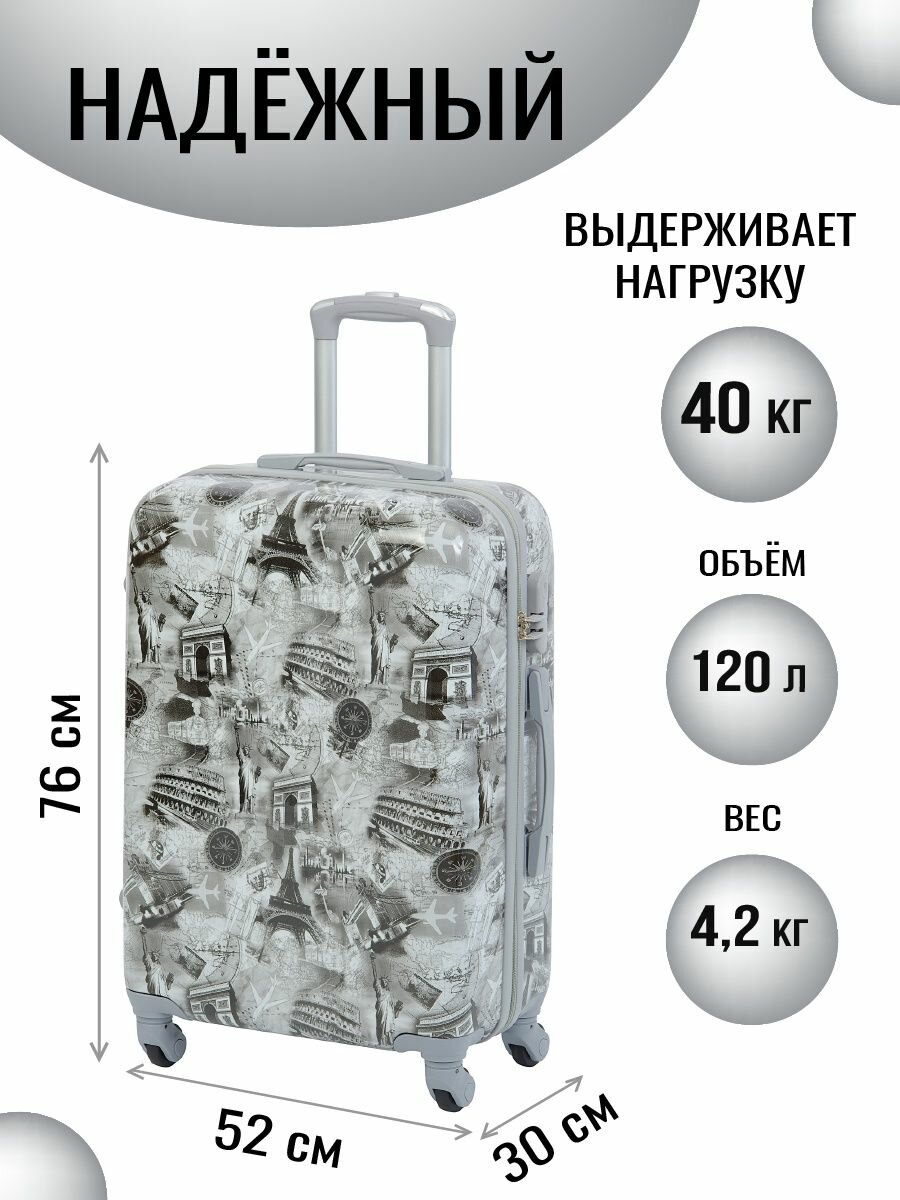 Чемоданы Чемодан на колесах дорожный большой семейный багаж для путешествий l+ TEVIN размер Л+ 76 см xl 120 л xxl легкий, прочный поликарбонат с рисунком