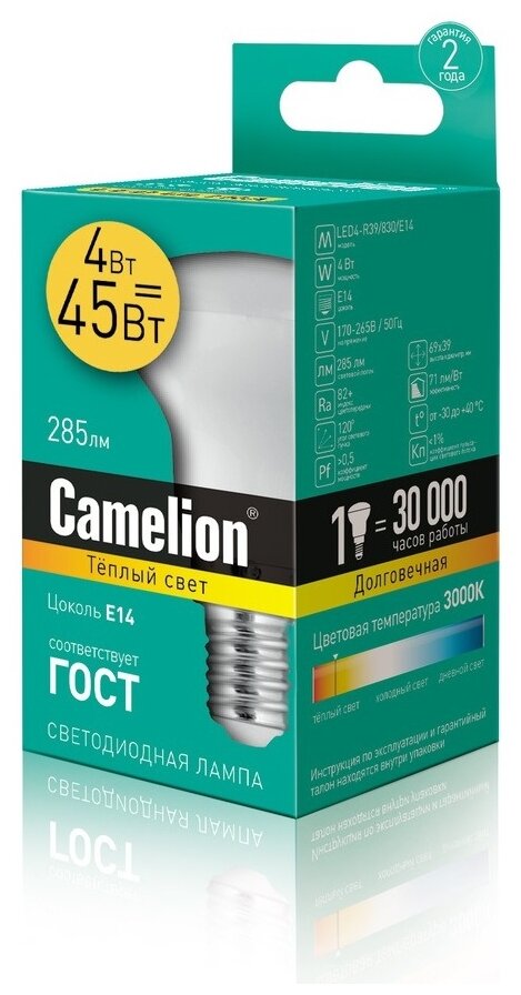 Лампочки Camelion (Эл.лампа светодиодная 4Вт 220В) CAMELION LED4-R39/830/E14 (1 шт.)