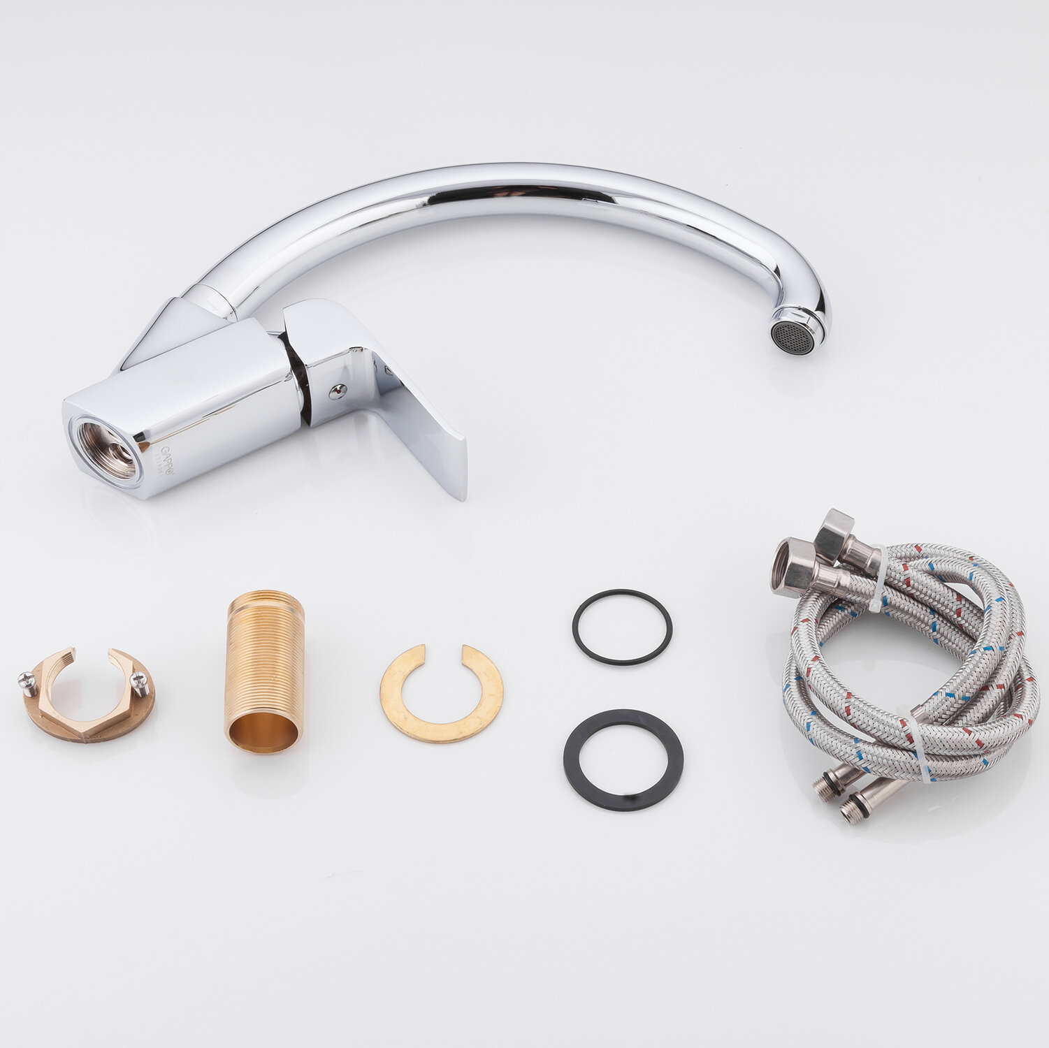 Лучшие цены. Смеситель для кухни Gappo G4150-8, имеет одну рукоять чтобы регулировать воду. Отличается комфортным управлением и стабильностью в процессе работы, поэтому пользуется в наше время немалой востребовательностью у покупателей. Аэратор в данном приборе помогает обеспечить равномерную подачу воды и ее смягчение. Специальная сетка отфильтровывает разнообразные примеси. Модель монтируется с помощью гайки, нижняя часть вставляется в отверстие для монтажа и с обратной стороны затягивается гайкой. Магазины в вашем городе.