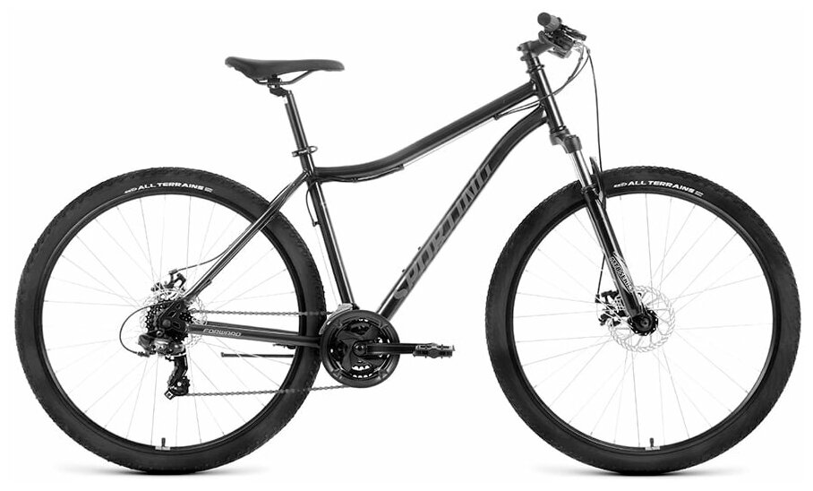 Велосипед FORWARD Sporting 29 2.2 D (2022), горный (взрослый), рама 21", колеса 29", черный/темно-серый, 14.51кг [rbk22fw29950]