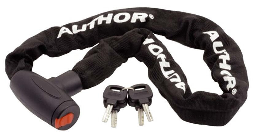 Лучшие цены. На сегодняшний день имеется несколько видов велосипедных замков, способных защитить от угона вашего железного друга. Самым надежным среди них считается каленная стальная цепь с прочным замком. Велосипедный замок от всемирно известной чешской компании AUTHOR, модели ACHL-55, как раз и относится к данному виду замков. Для большей надежности замок защищен от высверливания. Для того, чтобы стальная цепь не поцарапала раму велосипеда, она помещена в текстильную оплетку-чехол. Магазины в вашем городе.