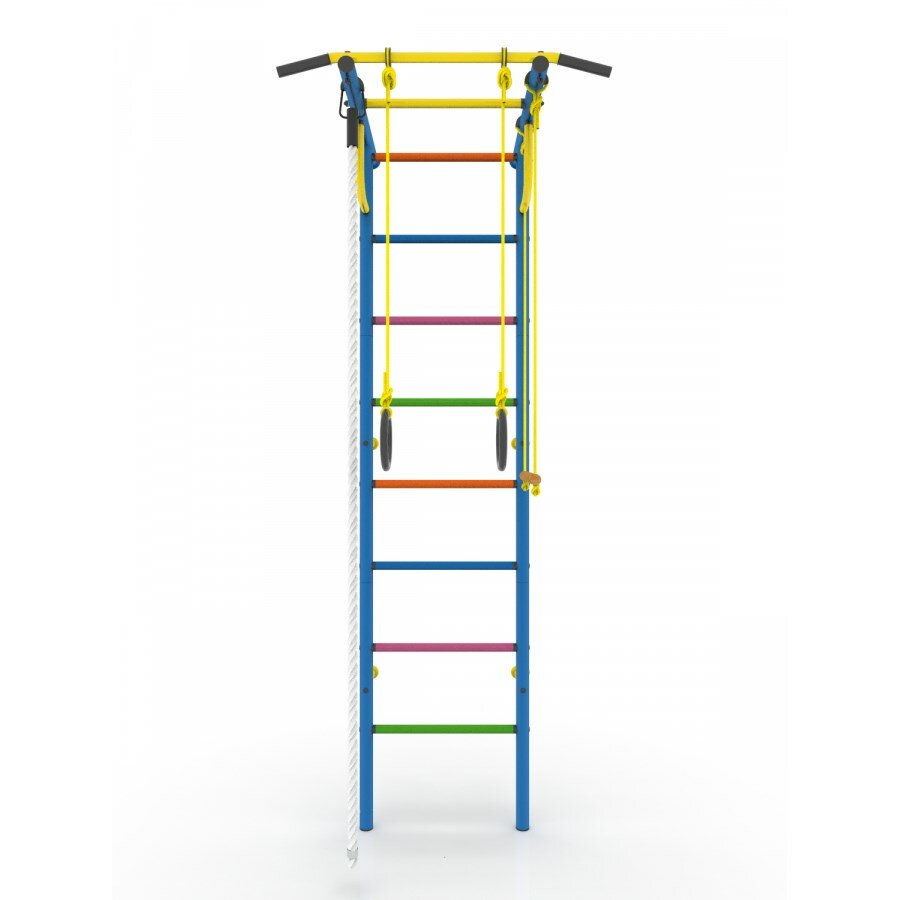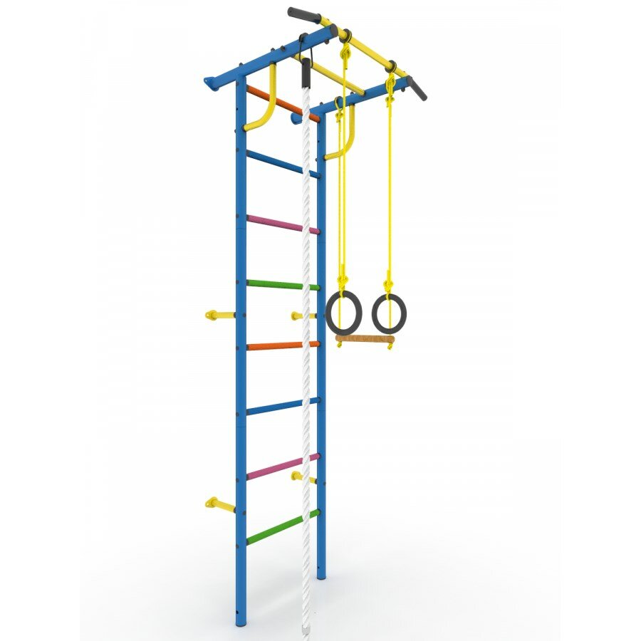 Лучшие цены. Каркас комплекса изготовлен из трубы диаметром 4,2 см, покраска порошковая. Ступеньки – из трубы 2,5 см, имеют массажное и противоскользящее, цветное ПВХ покрытие. Состав комплекса: 1) шведская лестница; 2) турник неподвижный; 3) кольца гимнастические; 4) трапеция; 5) канат Гарантия: 12 месяцев со дня реализации. Цвет: синий. Магазины в вашем городе.
