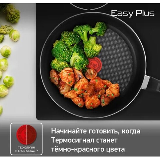 Сковорода 28 см Tefal Easy Plus с антипригарным покрытием, с индикатором температуры, для всех видов плит, кроме индукционных