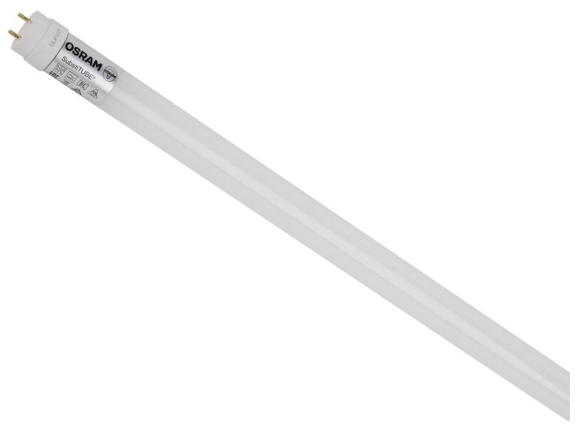 Лучшие цены. Светодиодные лампы OSRAM - разумная замена традиционным лампам T8. Светодиодные лампы OSRAM снижают затраты на освещение до 90% при сохранении привычного уровня освещенности. Эта лампа OSRAM серии Value выполнена в форме колбы T8 с цоколем G13. Материал колбы - стекло, исполнение - матовое. Световой поток 750 люмен, что соответствует люминесцентной лампе на 18 Вт. Такие лампы применяются для внутреннего освещения, чаще всего их используют в промышленности, складах и на парковках. Магазины в вашем городе.