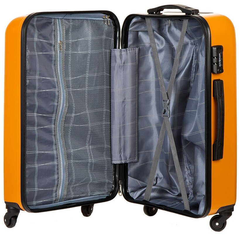 Лучшие цены. Чемодан Hello Maggie уникального размера М+ (26″) — 72х48х28 см. (меньше стандартного L , но больше стандартного M), на четырех колесах, которые вращаются на 360 градусов, из ударопрочного ABS пластика (без запаха). Произведен в России. Оснащен телескопической ручкой, двумя усиленными ручками и кодовым замком TSA. Чемодан состоит из двух отделений: отделение с фиксирующими ремнями и отделение на молнии, закрывающееся основной тканью с карманом сеткой на застежке-молнии. Магазины в вашем городе.