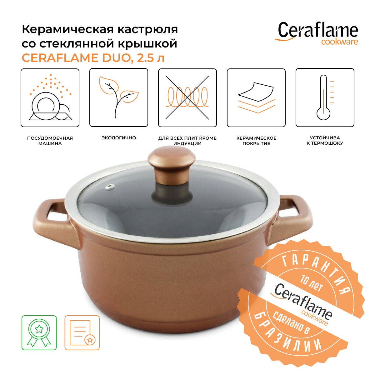 Кастрюля керамическая со стеклянной крышкой Ceraflame Duo 22 см, 3.2 л, медный 4 579 ₽ Подробнее
