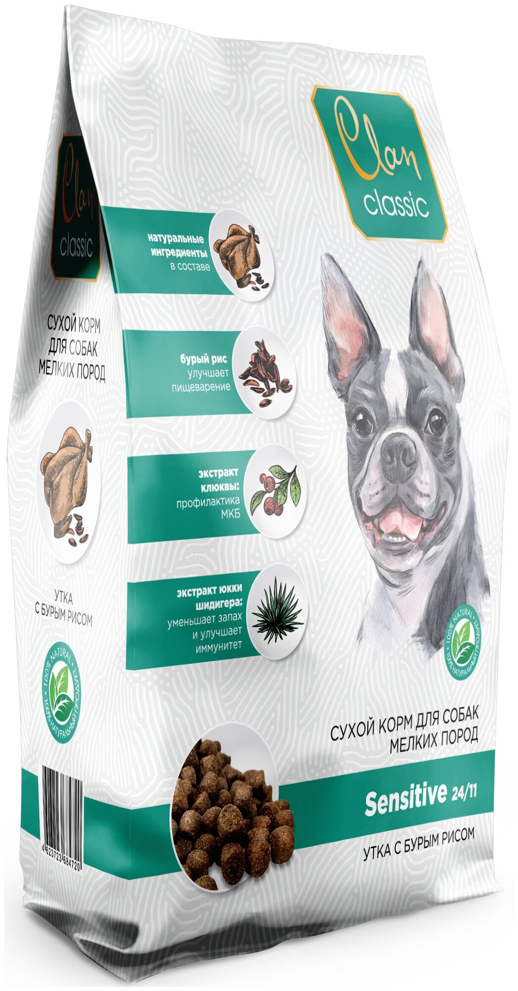 Clan Корм сухой для собак мелких пород Сlassic Sensitive-24/11, утка с бурым рисом, 400 г