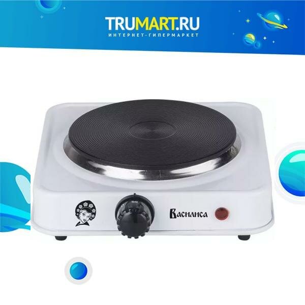 Плита электрическая настольная 1- конфорочная василиса (ВА-904) белая (1.0 кВт)