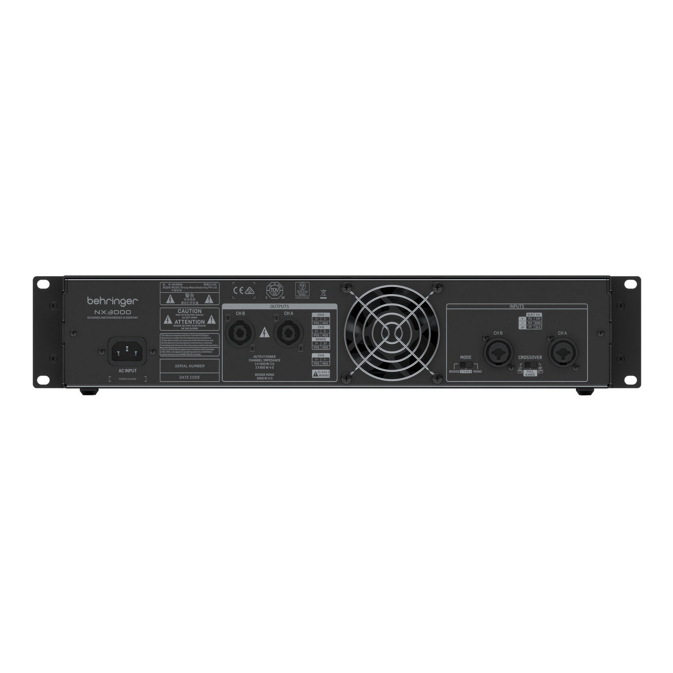 Behringer NX3000 усилитель 2-канальный. Мощность пик. 2 x 1500Вт 2/900Вт 4?/440Вт 8?, мост 3000Вт 4
