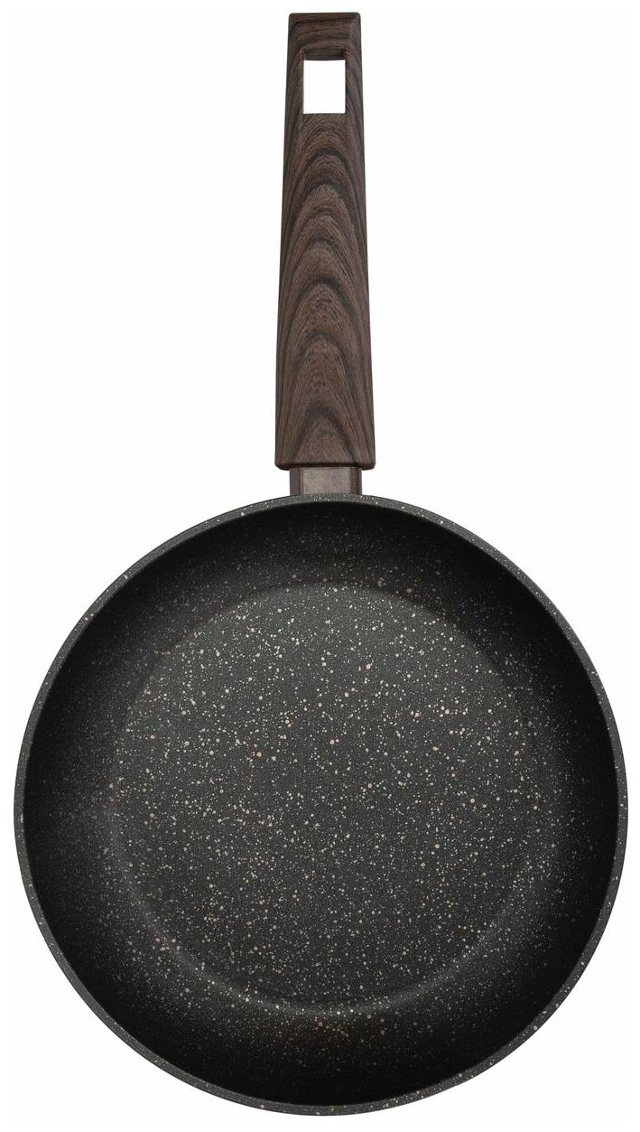 Лучшие цены. Сковорода из кованого алюминия имеет многослойное дно с антидеформационным диском. Сковородка с внешним жаропрочным матовым покрытием подходит для любых типов плит и сохраняет все вкусные и полезные свойства пищи. Внутреннее гранитное антипригарное покрытие подходит для приготовления пищи с минимальным количеством масла и не портит вкусовые качества и внешний вид блюд. Эргономичная ручка под дерево с покрытием Soft-touch имеет удобный захват, не греется и не выскальзывает из рук. Магазины в вашем городе.