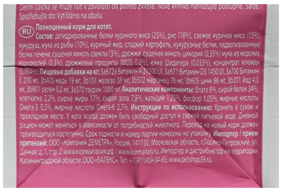 | Ингредиенты | курица (38%), маис, рис, жиры, белки, свекла, рыба (витамины, минералы) |