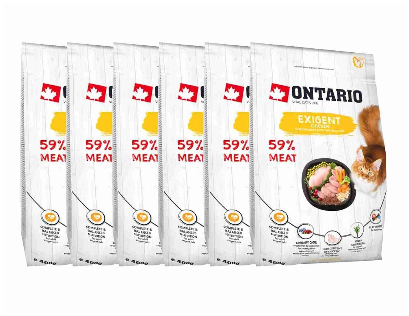 Корм для кошек Ontario Для особо требовательных кошек с курицей (Ontario Cat Exigent) 0,4 кг х 6 шт.