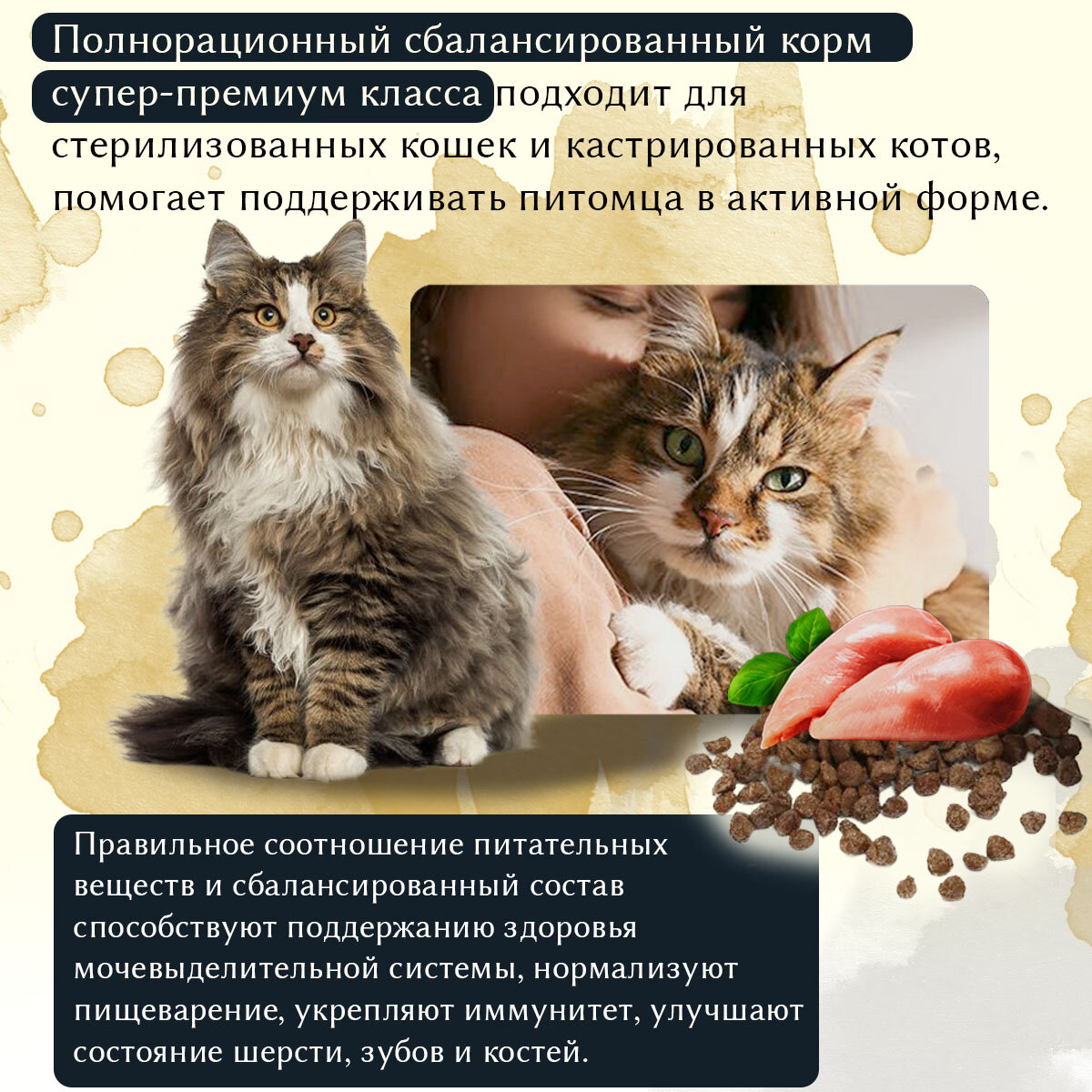 Корм сухой Gina Cat Sterilized Chicken & Rice для взрослых стерилизованных кошек с нормальным уровнем активности, Комплексный сбалансированный суперпремиум класса 3 кг