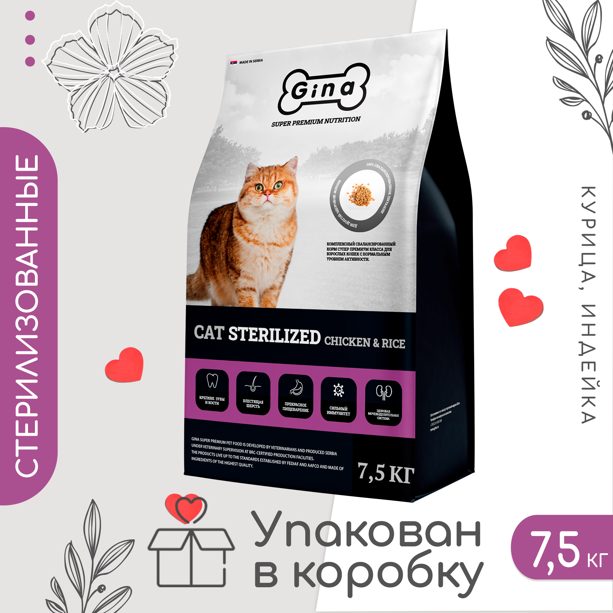 GINA Cat Sterilized Chicken Rice 7,5кг (Сербия), (1 шт)