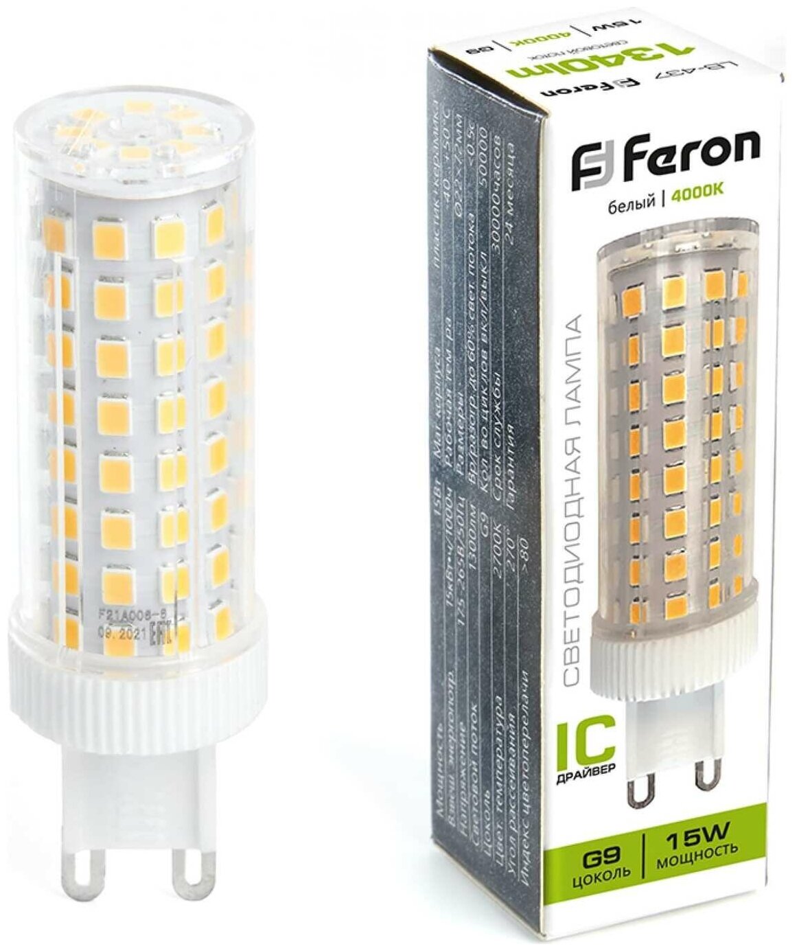 Лампочки Светодиодная лампа Feron LB-437 "Капсула" 15Вт 1340Лм G9 4000К